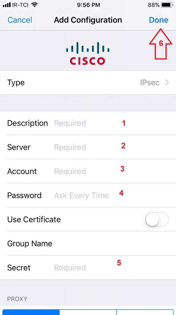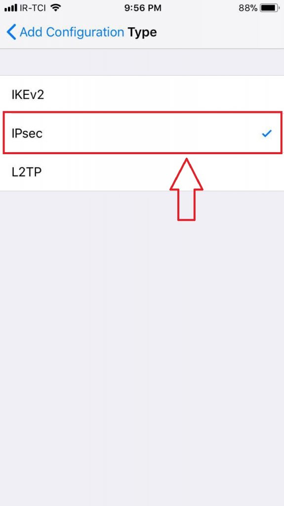 ۲ : یکی از آدرس های دریافتی پس از خرید و مربوط به “سرویس IPSEC” را انتخاب کرده و در این قسمت وارد کنید.